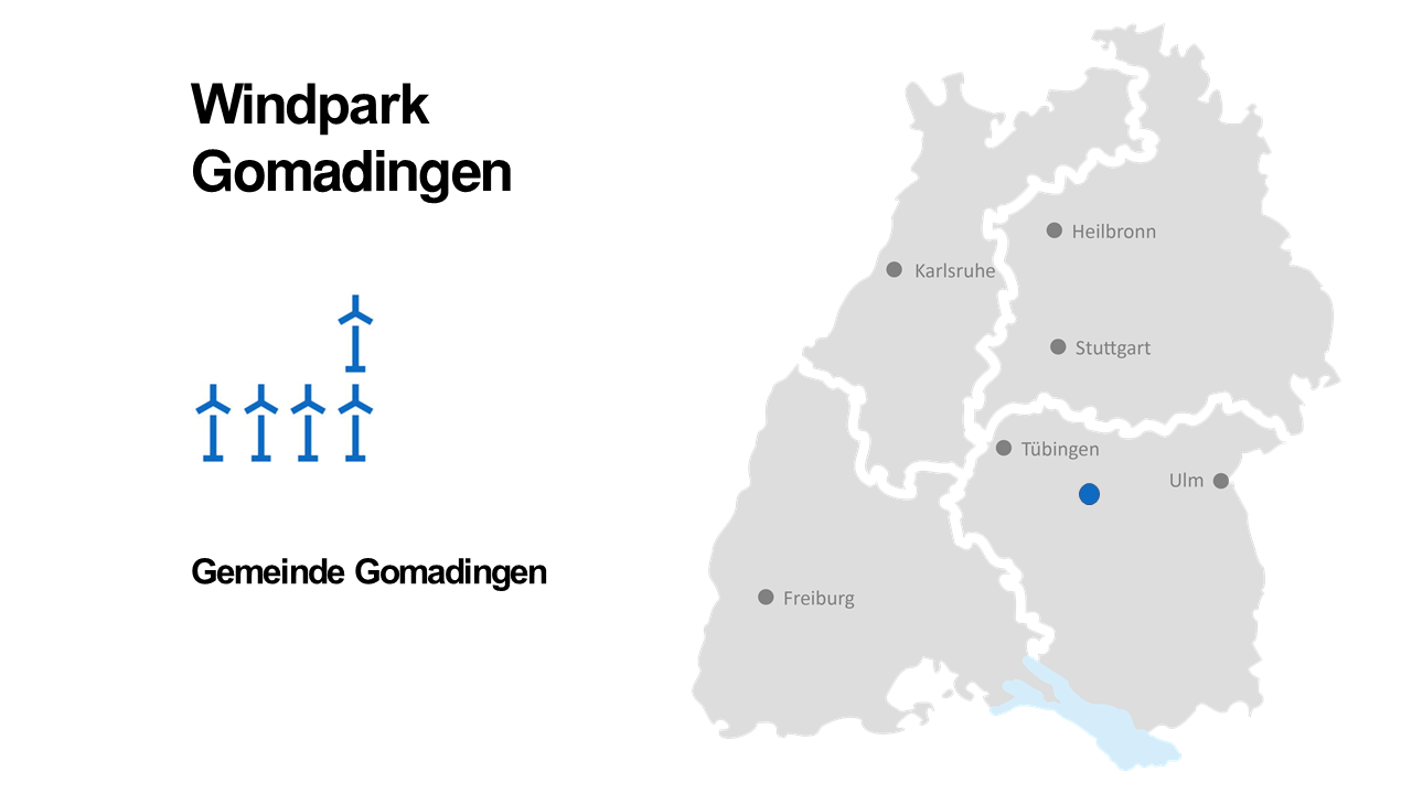 Die Windkraft Schonach GmbH plant in der Konzentrationszone des Flächennutzungsplans der vereinbarten Verwaltungsgemeinschaft Münsingen – Gomadingen – Mehrstetten “Gomadingen – Eichberg” die Errichtung und den Betrieb von fünf Windenergieanlagen. 2017 hat die WKS erfolgreich am Angebotsverfahren des ForstBW zur Projektierung von Windenergieanlagen teilgenommen und den Zuschlag erhalten. Seither haben zahlreiche Untersuchungen stattgefunden, die technische Planung des Projekts wurde durchgeführt, es wurde ein umfangreiches Vermeidungs- und Ausgleichskonzept zusammengestellt und der immissionsschutzrechtliche Genehmigungsantrag zusammengestellt.